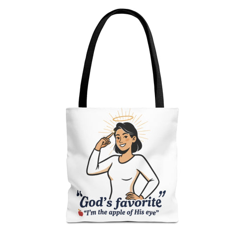 Christian Tote Bag — "God's Favorite: I'm the Apple of His Eye" Psalm 17:8