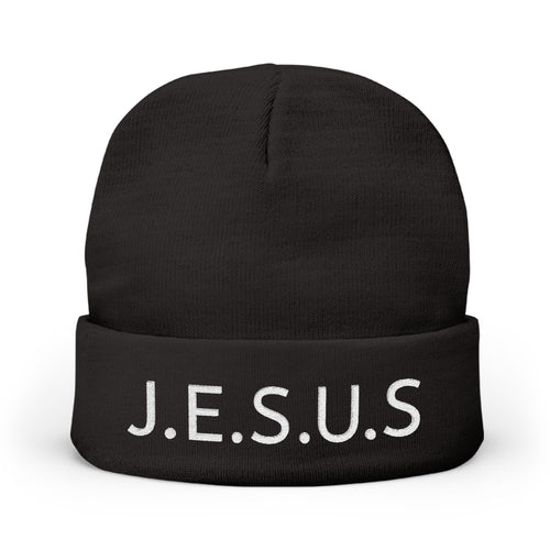 Embroidered JESUS Knit Beanie — Christian Faith Winter Hat